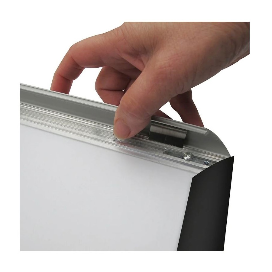 • Quick-snap spring-hinged front-load frame for fast poster changes