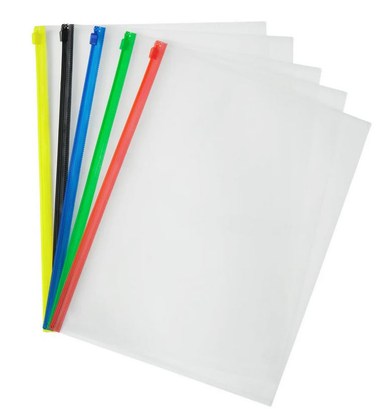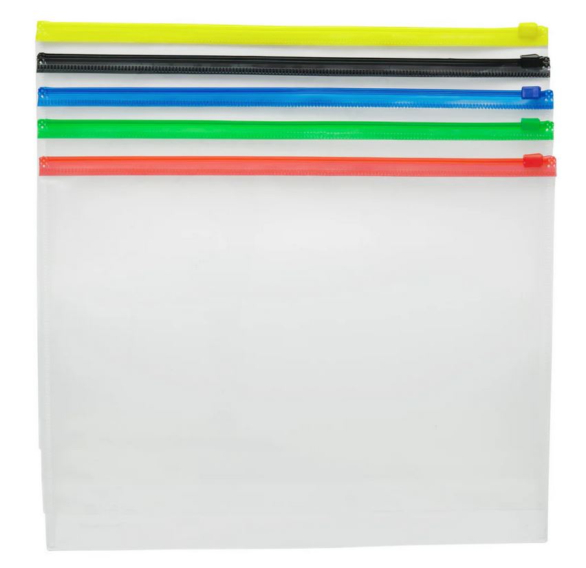 6531-5000-00-000 – 5 Pack Letter Size Poly Envelope Colour Zipper